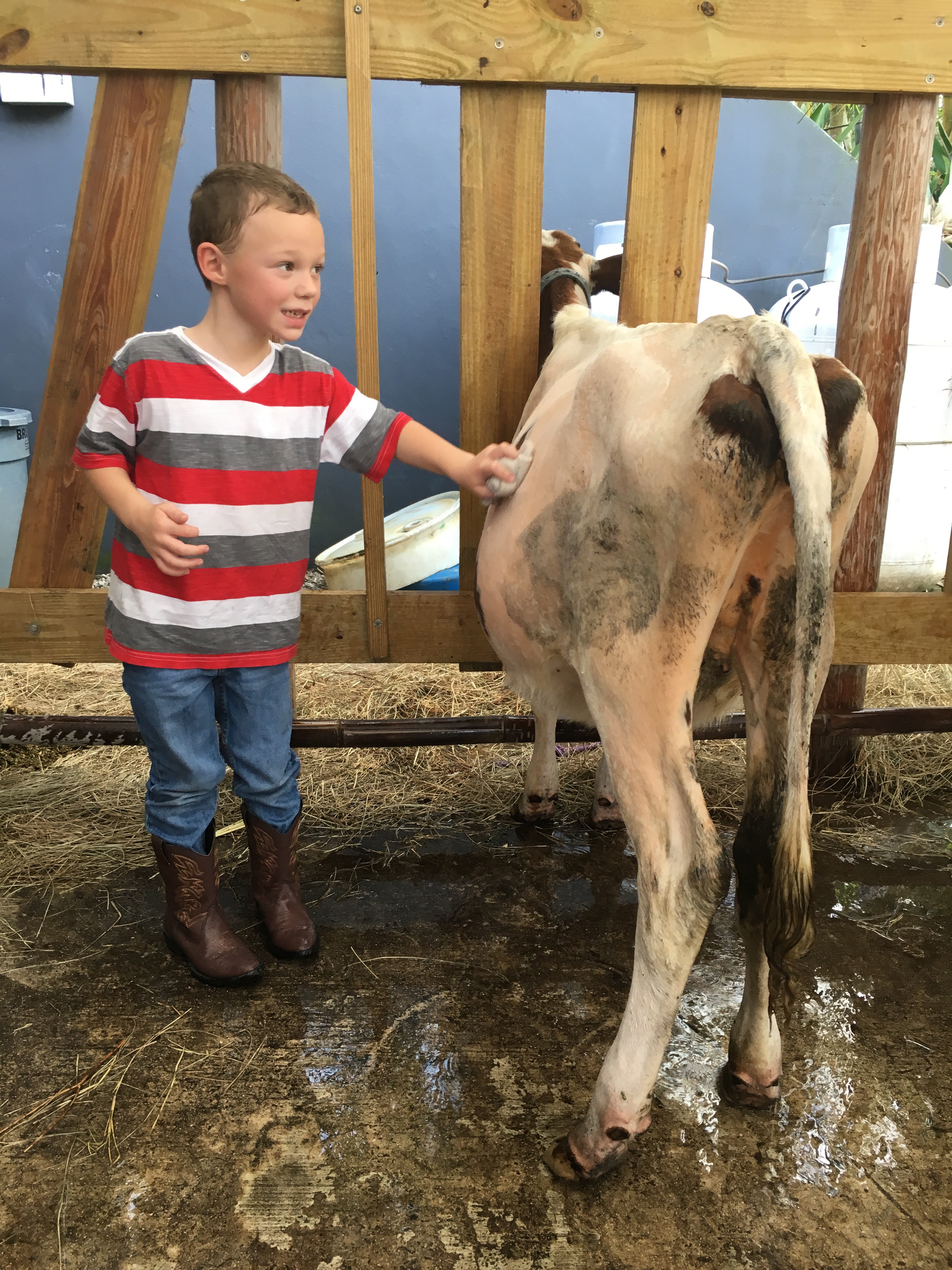 The kids were able to feed the cows, learn how to milk a cow and then they gave them baths.