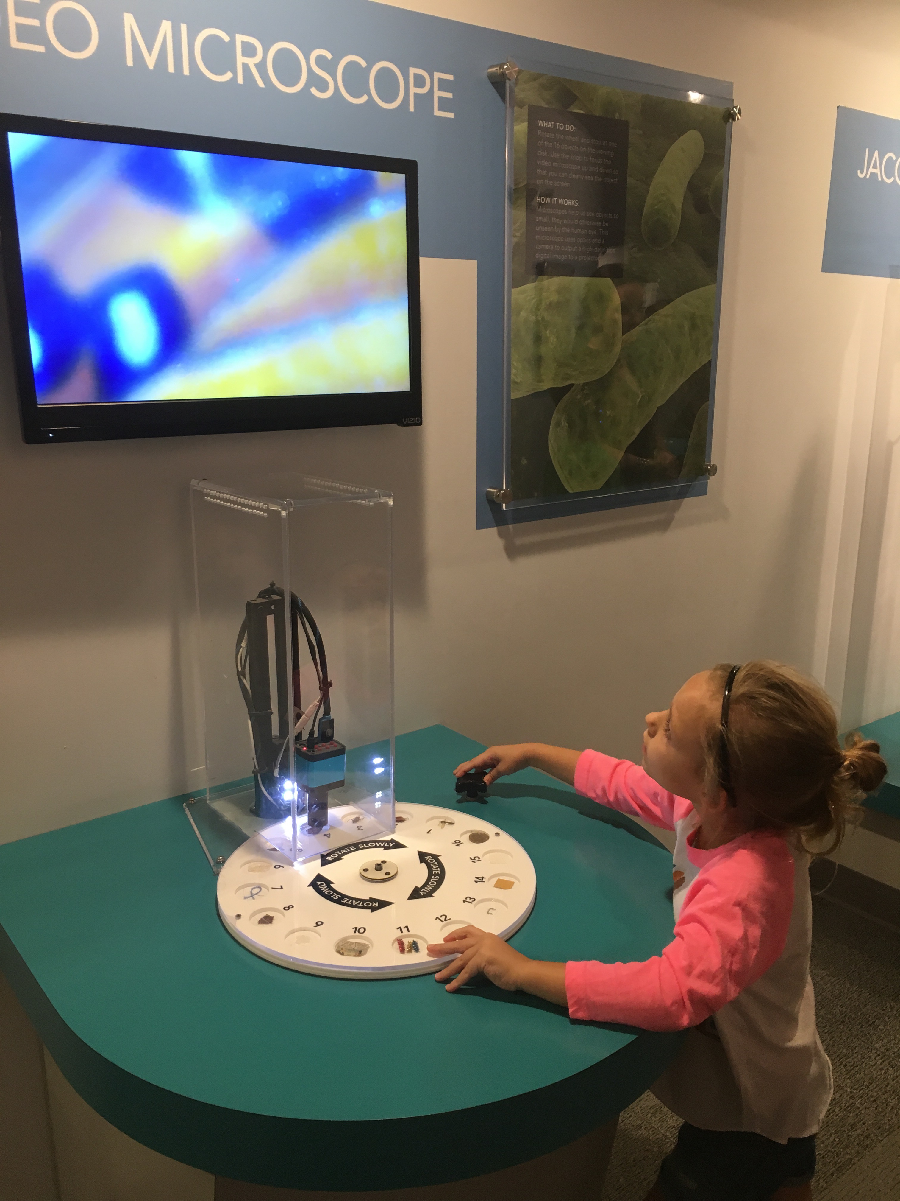We went to the museum with our homeschool group. Grace was really into the microscope. The boys loved the shadow room and the life size pin art.