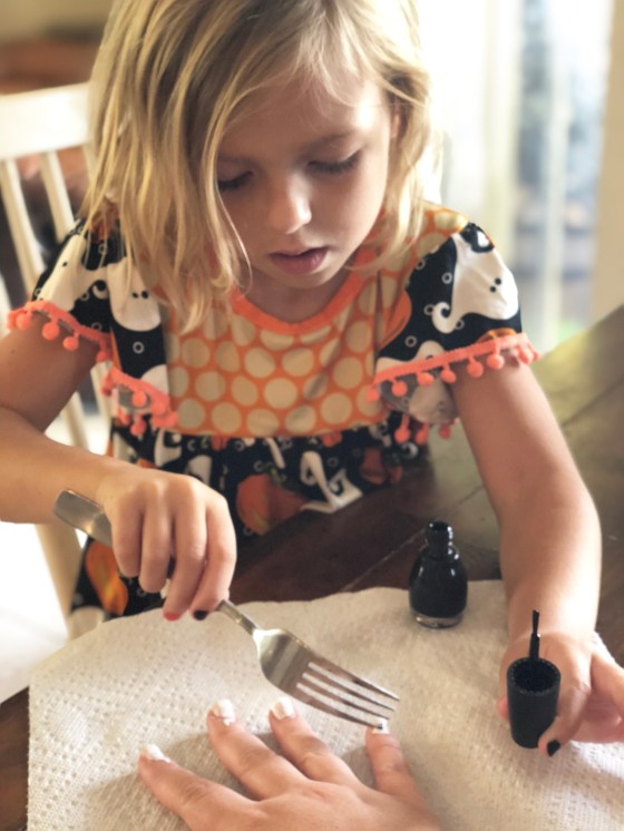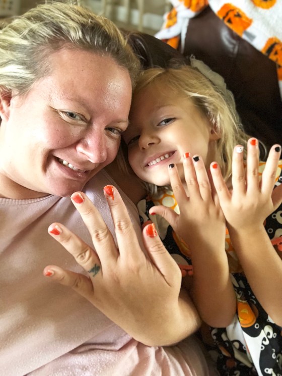 Me and Grace had a Girls night. Her one request was to go to Walgreens for nail polish and makeup. I got quite the spooky manicure.