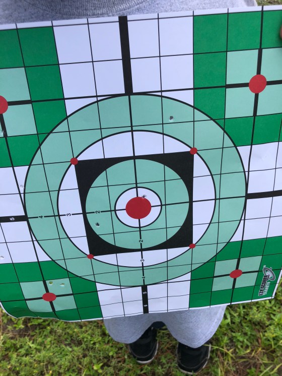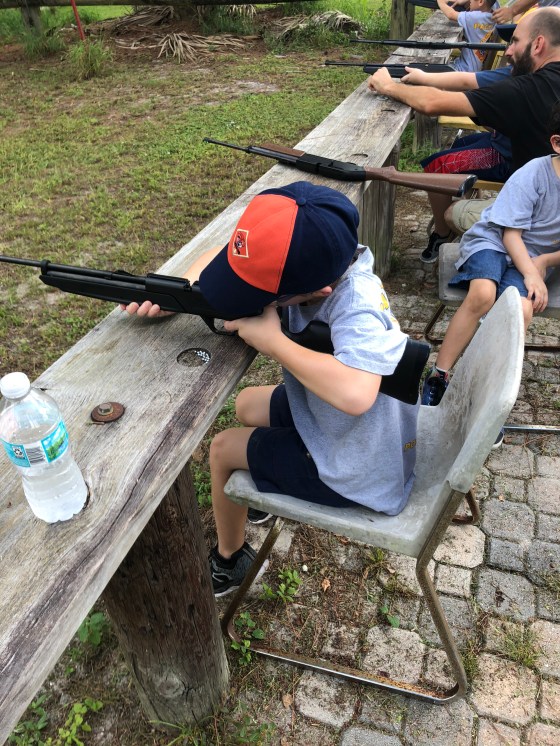 Timmy and Daddy were out camping. Daddy thought was clever telling Timmy that if he hit the bullseye with the BB gun he would buy him one. & now we have a BB gun.