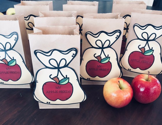 When we cut the Apple into pieces the kids wanted to save the seeds and Timmy discovered that one of the seeds had already sprouted inside the apple. Even I was amazed by that.