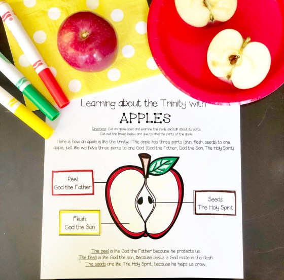We read the book A 3 in 1 Picture of God and it was all about how an Apple explains the Trinity and did a worksheet to go with it.