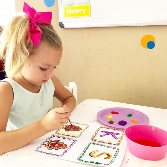 We colored the flag and map, took turns trying to find Italy on the globe and read lots of books. We learned some Italian words and special monuments. We even painted under our desks like Leonardo Da Vinci.