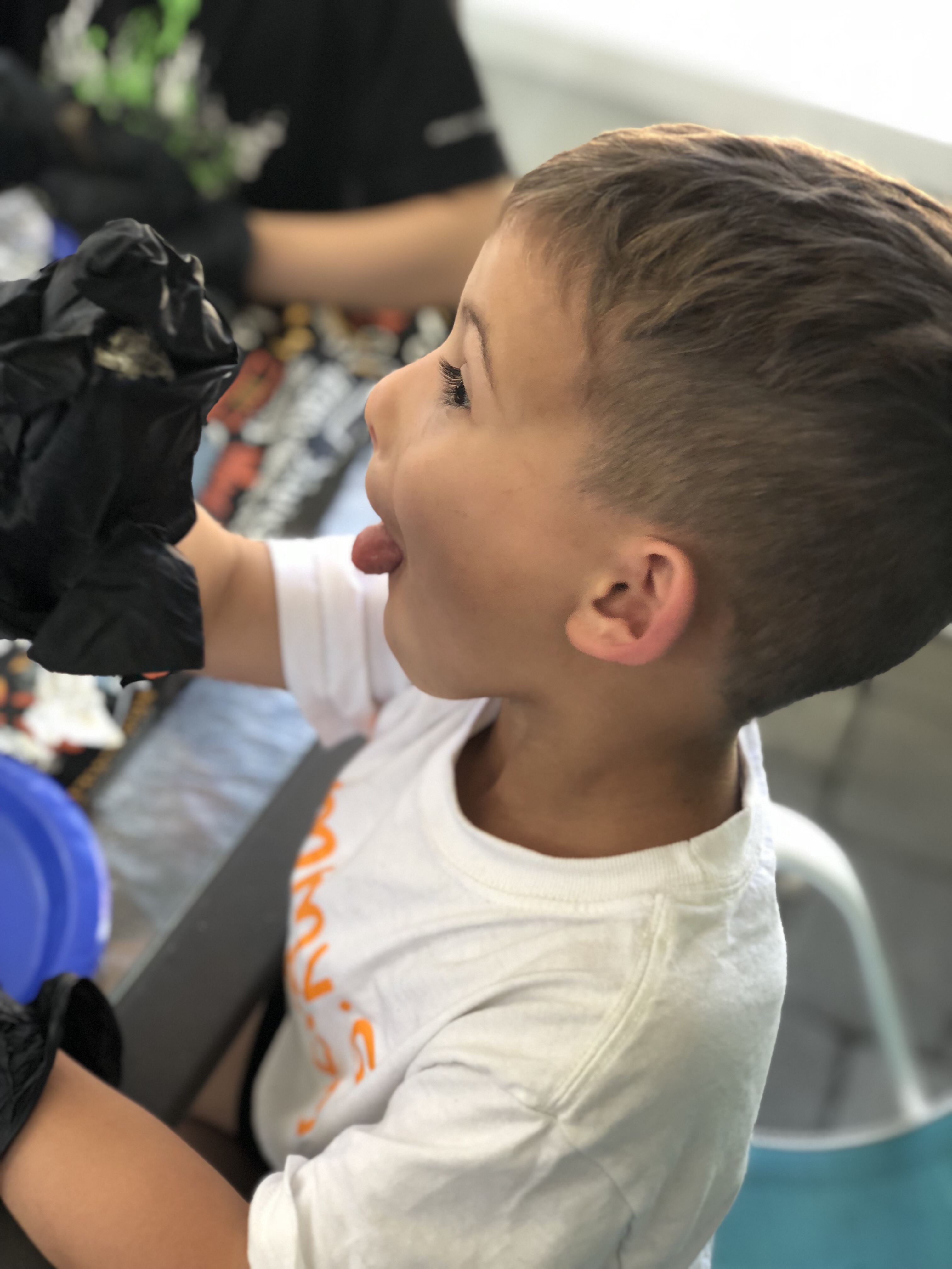 Then I broke out the snow cone machine and we we got our gloves and played with the closest thing we have to snow. Timmy even made a snowman.