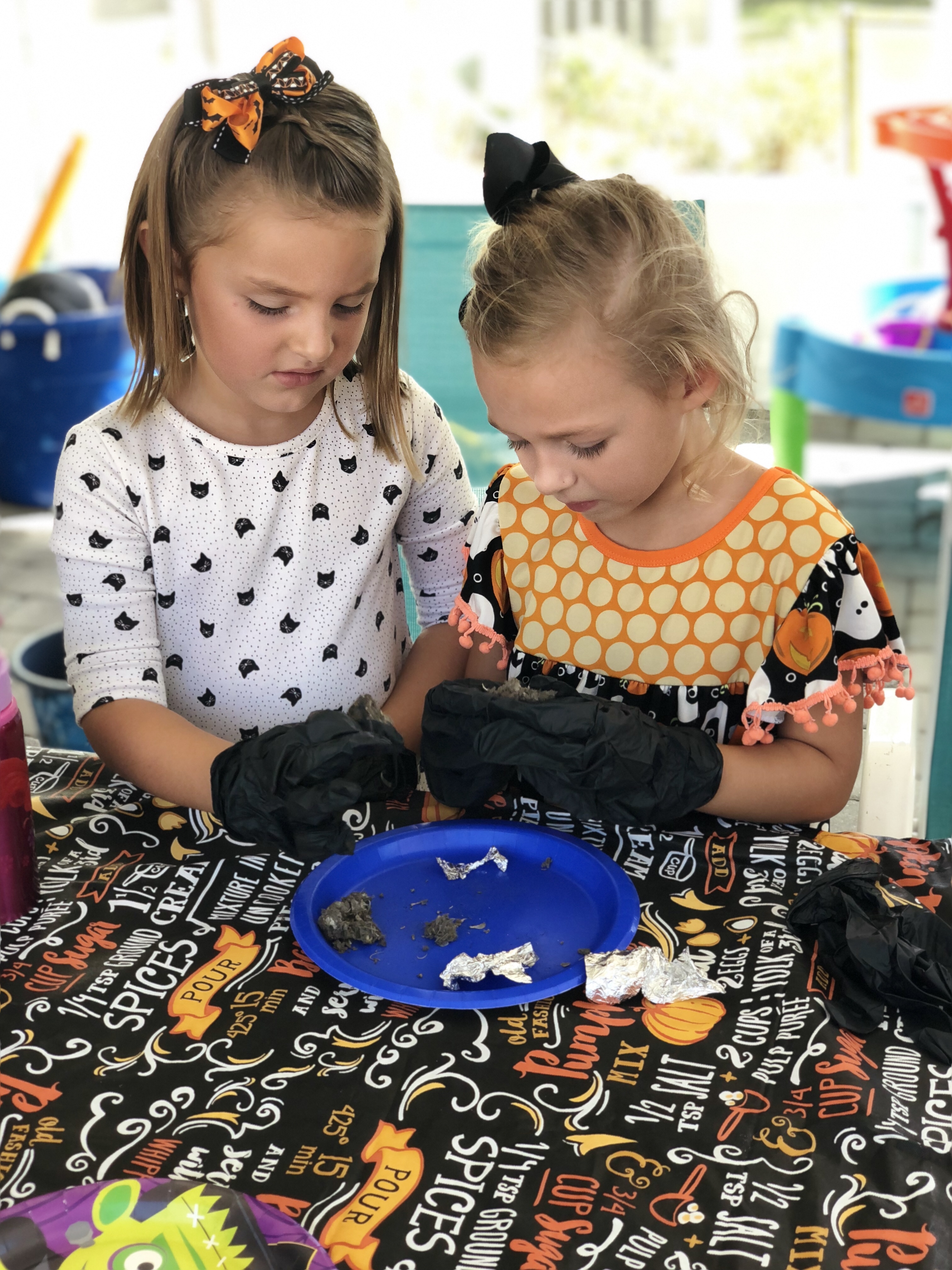 We dressed up and the kids really got into playing the part. The boys were fighting with guns and arrows and the girls were churning butter. And we made some real butter in little baby food jars and it really worked. The kids used it on their biscuits.